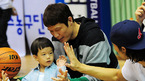 [OSEN=잠실실내체, 민경훈 기자] '2010-2011 현대모비스 프로농구' 서울 삼성과 대구 오리온스의 경기가 31일 오후 서울 잠실실내체육관에서 열렸다. 관람석에서 국가대표 삼성 이승준이 이규섭의 아들과 하이파이브를 하고 있다./rumi@osen.co.kr화보