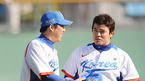 [OSEN=부산.김영민 기자] 조범현 감독이 이끄는 한국 야구표팀이 1일 부산 사직구장에서 KIA 타이거즈와 첫 평가전을 갖었다. 3회말 2사 만루 추신수 내야땅볼 아웃처리되면서 공수 교대때 김현수와 이야기를 나누고 있다. / ajyoung@osen.co.kr