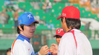 [OSEN=부산.김영민 기자] 조범현 감독이 이끄는 한국 야구표팀이 1일 부산 사직구장에서 KIA 타이거즈와 첫 평가전을 갖었다. KIA 타이거즈가 6-4로 승리를 거두며 경기 종료후 양현종이 KIA 타이거즈 동료들과 이야기를 나누고 있다. /