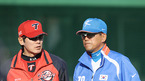 [OSEN=부산.김영민 기자] 조범현 감독이 이끄는 한국 야구표팀이 1일 부산 사직구장에서 KIA 타이거즈와 첫 평가전을 갖었다. KIA 타이거즈가 6-4로 승리를 거두며 경기 종료후 조범현 감독이 이강철 코치와 이야기를 나누고 있다. /ajyoung@osen.co.kr