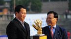 [OSEN=용인, 민경훈 기자] 2010 올레 KT U리그 왕중왕전 경희대학교와 연세대학교의 결승전이 5일 오후 경희대학교 용인 국제캠퍼스에서 열렸다.하프타임때 이운재가 조중연 대한축구협회 회장으로부터 골든글러브 트로피를 수상하고 있다./rumi@osen.c