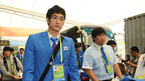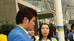 [OSEN=광저우.김영민 기자] 조범현 감독이 이끄는 한국 야구대표팀이 10일 오전 인천공항을 출발하여 오후 중국 광저우 바이윈 공항을 통해 입국했다. 출국장을 빠져나온 추신수가 자원봉사자의 이야기를 듣고 있다./ ajyoung@osen.co.kr