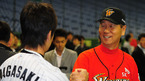 [OSEN=도쿄, 민경훈 기자] 한국시리즈 챔피언 SK 와이번스가 일본시리즈 챔피언 지바 롯데 마린스와의 '한일 클럽 챔피언십 시리즈'를 하루 앞두고 12일 오후 일본 도쿄돔에서 훈련을 가졌다.훈련 중 SK 김성근 감독이 지바 롯데 나가사키와 손을 붙잡고 있다.