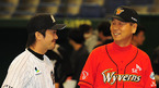 [OSEN=도쿄, 민경훈 기자] 한국시리즈 챔피언 SK 와이번스가 일본시리즈 챔피언 지바 롯데 마린스와의 '한일 클럽 챔피언십 시리즈'를 하루 앞두고 12일 오후 일본 도쿄돔에서 훈련을 가졌다.훈련 중 SK 김성근 감독이 지바 롯데 나가사키와 즐겁게 얘기를 나누