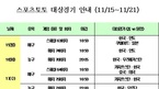 스포츠토토 대상경기 안내 (11/15~11/21)