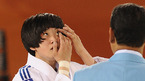 [광저우=김영민 기자] 15일 중국 광저우 화궁 체육관에서 열린 2010년 제16회 광저우 아시아경기 유도 여자 -57kg 결승전 경기에서 한국의 김잔디가 경기중 빠저버린 콘택트렌즈를 끼우고 있다./ ajyoung@osen.co.kr