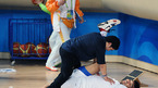 [OSEN=광저우, 김영민 기자] 16일 중국 광저우 잉동 체육관에서 열린 2010년 제16회 광저우 아시아경기 남자농구 예선E조 한국-우즈베키스탄 경기에서 3쿼터 김주성이 공격때 상대편의 수비에 얼굴을 가격당하고 난뒤 코트에 넘어져있다./ ajyoung@osen.co.kr