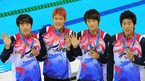 [OSEN=광저우,지형준 기자] 16일 오후 광저우 아오티 아쿠아틱센터에서 열린 2010 아시안게임 수영 남자 400m 계영에서 한국팀이 동메달을 획득했다. 한국선수들이 동메달을 들고 환하게 웃으며 포즈를 취하고 있다. /jpnews@osen.co.kr