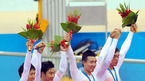 [광저우=김영민 기자] 16일 중국 광저우 벨로드롬에서 열린 2010년 제16회 광저우 아시아경기 사이클 남자 단체추발 결승전 경기에서 한국의 장선재(대한지적공사), 조호성(서울시청), 박선호(서울시청), 황인혁(금산군청)이 금메달을 따냈다. 시상대