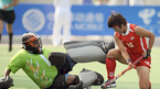 [OSEN=광저우,김영민 기자] 17일 중국 광저우 아오티 경기장에서 열린 2010년 제16회 광저우 아시아경기 여자 필드하키 한국-인도 경기에서 전반 박미현이 골문에서 공격을 시도하고 있다 ./ ajyoung@osen.co.kr