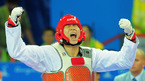 [OSEN=광저우, 지형준 기자] 허준녕이 18일 저녁 중국 광저우 광둥체육관에서 열린 2010 광저우 아시안게임 태권도 남자 87kg 이상급 결승전에서 화려한 발차기로 안면 공격을 잇달아 성공시키며 중국의 정이에 11-4로 완승했다.허준녕이 환호
