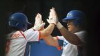 [OSEN=광저우,김영민 기자] 18일 중국 광저우 아오티 야구장에서 열린 제16회 광저우 아시아경기 한국-중국 야구 준결승 경기 5회말 2사 1,3루 김태균 2타점 적시타 추신수 득점을 올리며 선행주자 정근우의 환영을 받고 있다./ ajyoung@osen.co.kr