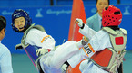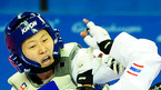 [OSEN=광저우,지형준 기자] 18일 오후 중국 광저우 광둥체육관에서 열린 아시안게임 태권도 여자 57kg급 16강 경기에서 이성혜가 발차기 공격을 성공시키고 있다. /jpnews@osen.co.kr