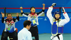 [OSEN=광저우,지형준 기자] 18일 오후 중국 광저우 광둥체육관에서 열린 아시안게임 태권도 여자 57kg급 16강 경기에서 이성혜가 발차기 공격을 성공시키고 기뻐하고 있다. /jpnews@osen.co.kr