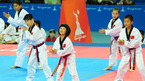 [OSEN=광저우, 지형준 기자] 18일 오후 중국 광저우 광둥체육관에서 열린 아시안게임 태권도 경기 중간에 중국 아이들이 한류스타 슈퍼주니어의 쏘리쏘리 노래에 맞춰 율동을 하고 있다. /jpnews@osen.co.kr 화보로 보는 뉴스, 스마트폰으로 즐기는