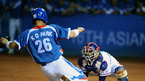 [OSEN=광저우,김영민 기자] 19일 중국 광저우 아오티 야구장에서 열린 제16회 광저우 아시아경기 한국-대만 야구 결승 3회초 2사 1,2루 정근우 안타때 2루 주자 박경완 홈까지 쇄도했으나 태그아웃 처리되고 있다. / ajyoung@osen.co.kr