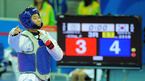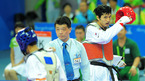 [OSEN=광저우 지형준 기자] 19일 오후 중국 광저우 광둥체육관서 열린 아시안게임 태권도 남자 68kg이하 8강전에서 장세욱이 안면 공격을 허용하고 아쉬워하고 있다. 장세욱은 2대6으로 뒤진 상황에서 경기종료 10여초 앞두고 극적으로 7대6 승리를 거두고 4강에