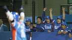 [OSEN=광저우,김영민 기자] 19일 중국 광저우 아오티 야구장에서 열린 제16회 광저우 아시아경기 한국-대만 야구 결승 경기 9회초 1사 1루 강정호가 좌측 폴대를 맞추는 투런 홈런을 치자 덕아웃에 있던 임태훈이 만세를 부르고 있다./ ajyou