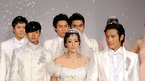 [OSEN=박준형 기자]유니세프 주최로 디자이너 故 앙드레김 추모 패션쇼가 19일 오후 서울 남산 하얏트호텔에서 진행됐다. 이날 모델로 나선 배우 이병헌과 김희선, 오종혁, 최시원이 고인의 작품을 보이고 있다./soul1014@osen.co.kr