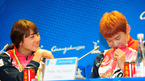 [OSEN=광저우 지형준 기자] 박태환과 정다래가 20일 오전 중국 광저우 미디어 프레스센터 내 컨퍼런스룸에서 기자회견을 가졌다. 박태환은 자신이 출전한 모든 종목에서 모두 3위 안에 입상하며 2개 대회 연속 총 7개(금3,은2,동2)의 메달을 목에 걸었고