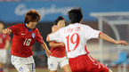 [OSEN=광저우 지형준 기자] 아시안게임 첫 우승을 노리는 한국 여자축구 대표팀이 20일 오후 중국 광저우 톈허 스타디움에서 북한과 4강전 경기를 가졌다. 전반 북한 조윤미가 선제골을 성공시키고 동료선수들과 기뻐하고 있다. /jpnews@osen.co.kr