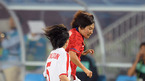 [OSEN=광저우,김영민 기자] 20일 중국 광저우 톈허 스타디움에서 제16회 광저우 아시아경기 여자축구 준결승 한국-북한 경기가 열렸다. 후반 지소연이 북한의 정복심을 제치면서 슈팅 찬스를 노리고 있다./ ajyoung@osen.co.kr