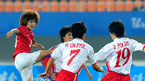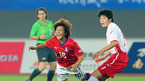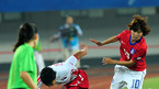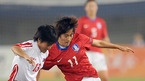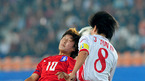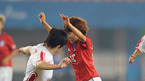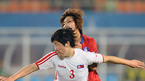 [OSEN=광저우,김영민 기자] 20일 중국 광저우 톈허스타디움에서 제16회 광저우 아시아경기 여자축구 준결승 한국-북한 경기가 열렸다. 전반 북한 최영심이 지소연의 공격을 차단시키고 있다. / ajyoung@osen.co.kr