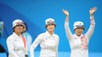 [OSEN=광저우,김영민 기자] 21일 중국 광저우 아오티 양궁장에서 열린 제16회 광저우 아시아경기 양궁 여자단체전 준결승 경기에 출전한 기보배(광주시청), 윤옥희(예천군청), 주현정(현대모비스)이 인도에 연장전 끝에 이겨 결승에 진출했다. &