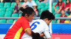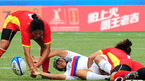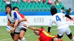 [OSEN=광저우 지형준 기자] 아시안게임에 첫 출전하는 여자 럭비 대표팀이 21일 오후 중국 광저우 유니버시티 타운 메인 스타디움에서 열린 중국과 예선 경기서 51대0으로 패배했다. 전반 한국 민경진이 중국 선수에 트라이를 허용하고 있