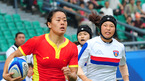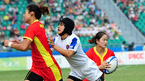 [OSEN=광저우 지형준 기자] 아시안게임에 첫 출전하는 여자 럭비 대표팀이 21일 오후 중국 광저우 유니버시티 타운 메인 스타디움에서 열린 중국과 예선 경기서 51대0으로 패배했다. 전반 한국 김아가다가 트라이를 시도하는 중국