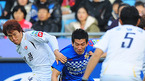[OSEN=울산, 민경훈 기자] 2010 쏘나타 K리그 6강 플레이오프 울산 현대와 성남 일화의 경기가 울산 문수 경기장에서 열렸다.울산 오장은이 집중마크를 당하며 넘어지고 있다./rumi@osen.co.kr