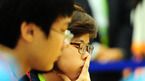 [OSEN=광저우 지형준 기자] 22일 오후 중국 광저우 체스경기장에서 아시안게임 혼성연기 바둑 한국의 이슬아-박정환 조와 중국의 셰허-송룽후이 조의 결승전 열렸다. 경기전 이슬아가 안경을 닦기 위해 입김을 불어넣고 있다. /jpnews@osen.co.kr