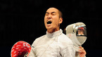 [OSEN=광저우 지형준 기자] 22일 오후 중국 광저우 광다체육관에서 열린 아시안게임 펜싱 남자 단체 사브르 결승전 한국과 중국의 경기, 김정환이 공격을 성공시키고 환호하고 있다. /jpnews@osen.co.kr