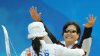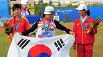 [OSEN=광저우 지형준 기자] 23일 광저우 아오티 양궁장에서 열린 2010 광저우 아시안게임 여자 양궁 동메달 결정전에서 북한의 권은실이 동메달을 차지하자 북한 응원단이 환호하고 있다./jpnews@osen.co.kr화보로 보는 뉴스, 스마트폰으로