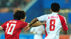 [OSEN=광저우 지형준 기자] 23일 오후 중국 광저우 톈허 스타디움서 열린 아시안게임 남자 축구 한국과 UAE의 준결승 경기, 후반 박주영이 UAE 수비수를 피해 슛을 시도하고 있다. 홍명보호는 박주영을 원톱으로 내세워 8강전서 우승