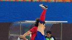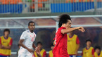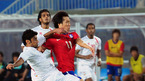 [OSEN=광저우 지형준 기자] 23일 오후 중국 광저우 톈허 스타디움서 열린 아시안게임 남자 축구 한국과 UAE의 준결승 경기, 전반 조영철이 UAE 수비수에 걸려 넘어지고 있다. 홍명보호는 박주영을 원톱으로 내세워 8강전서 우승후보