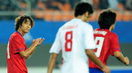 [OSEN=광저우 지형준 기자] 23일 오후 중국 광저우 톈허 스타디움서 열린 아시안게임 남자 축구 한국과 UAE의 준결승 경기, 전반 박주영이 김보경 슈팅에 박수를 보내고 있다. 홍명보호는 박주영을 원톱으로 내세워 8강전서 우승후보 북