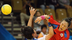 [OSEN=광저우,김영민 기자] 25일 오후 중국 광저우 광공 경기장에서 열린 제16회 광저우 아시아경기 여자핸드볼 준결승 한국-일본 경기 전반 김차연이 일본의 수비 파울에 넘어지고 있다. / ajyoung@osen.co.kr