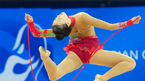[OSEN=광저우 지형준 기자] 25일 오전 중국 광저우 아시안게임 타운 체육관에서 열린 리듬체조 개인종합과 팀 경기에서 신수지가 줄 연기를 선보이고 있다. /jpnews@osen.co.kr