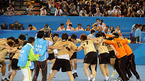 [OSEN=광저우,김영민 기자] 한국이 26일 저녁 중국 광저우 화스체육관에서 열린 2010 광저우 아시안게임 핸드볼 남자 결승전에서 이란을 32-28로 꺾고 8년 만의 금메달을 차지했다. 경기 종료직전 금메달이 확정되자 선수들이 환호하고 있