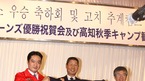 SK 와이번스가 1일 오후 일본 마무리 캠프지인 고치시가 연 축승회에 참가했다. 선수단과 프런트, 고치 측 인사를 포함해 총 100여명이 참석한 이날 행사는 오자키 고치현 지사(왼쪽)와 오카자키 고치시장(오른쪽)의 축사로 시작해 김성근 SK 감독의 답사, 기념품