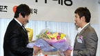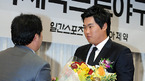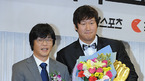 [OSEN=박준형 기자] 2010 조아제약 프로야구 대상 시상식이 8일 오전 서울 세종문화회관 세종홀에서 열렸다. 이날 시상식에서 이대호가 대상을 수상하자 추신수가 축하 꽃다발을 건네고 있다. /soul1014@osen.co.kr ◇2010