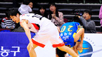 [OSEN=잠실실내체,지형준 기자] 17일 오후 서울 잠실실내체육관에서 열린 '2010~2011 현대모비스 프로농구' 서울 삼성과 부산 KT의 경기, 1쿼터 삼성 차재영이 KT 조성민의 다리에 걸려 넘어지고 있다. / jpnews@osen.co.kr
