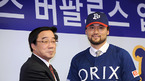 [OSEN=김영민 기자] '코리안특급' 박찬호(37)가 21일 오후 역삼동 피트니스센터 park 61에서 일본 프로야구 오릭스 버팔로스(Orix Buffaloes) 공식 입단 기자회견을 가졌다. 박찬호가 무라야마 요시오 구단본부장과 악수를 나