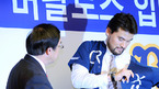 [OSEN=김영민 기자] '코리안특급' 박찬호(37)가 21일 오후 역삼동 피트니스센터 park 61에서 일본 프로야구 오릭스 버팔로스(Orix Buffaloes) 공식 입단 기자회견을 가졌다. 기자회견을 마친 박찬호가 무라야