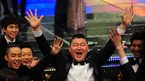 [OSEN=민경훈 기자] 올 한 해 KBS 예능을 총 결산하는 자리인 ‘2010 KBS 연예대상’이 25일 밤 서울 여의도 KBS 신관공개홀에서 열렸다.이경규가 연예대상에 확정되자 강호동이 만세를 부르고 있다. /rumi@osen.co.kr