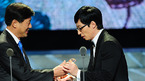 [OSEN=민경훈 기자] 올 한 해 MBC 예능 프로그램을 결산하는 자리인 ‘2010 MBC 방송연예대상’ 시상식이 29일 밤 경기도 고양시 일산 MBC 드림센터에서 성황리에 개최됐다.유재석이 대상을 수상한 후 강호동과 포옹을 하고 ./rumi@osen.co.kr