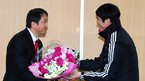 [OSEN=구리, 지형준 기자] 5일 오후 경기도 구리 GS챔피언스파크에서 FC서울 황보관 감독이 선수단과 상견례를 갖으며 주장 박용호의 꽃다발을 건네받고 있다. /jpnews@osen.co.kr
