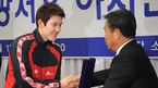 [OSEN=박준형 기자]대한수영연맹이 주최하는 제16회 광저우아시안게임 포상식이 13일 오후 서울 올림픽파크텔에서 진행됐다. 박태환과 정다래가 이야기를 나누고 있다. /soul1014@osen.co.kr