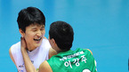 [OSEN=장충체, 전성민 기자] 강서브와 블로킹이 살아난 우리캐피탈이 끈질기게 추격전을 펼친 선두 대한한공을 꺾고 홈개막전을 승리로 화려하게 장식했다. 박희상 감독이 이끈 우리캐피탈은 16일 장충체육관서 열린 NH농협 2010-2011